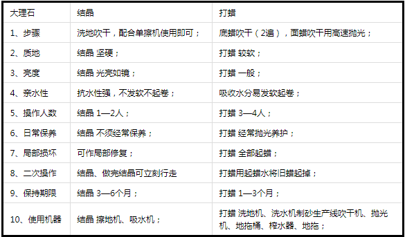 大理石進行晶面保養(yǎng)時必須具有一定光澤度(60度以上)、平整度、無深度劃痕、和嚴重污損為基礎(chǔ)。