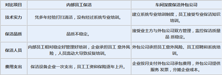 車間深度保潔外包與內(nèi)部員工保潔對比